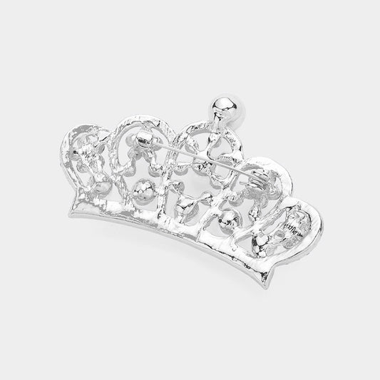 Pearl Pointed Stone Paved Crown Pin Brooch