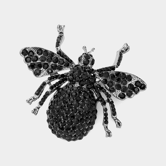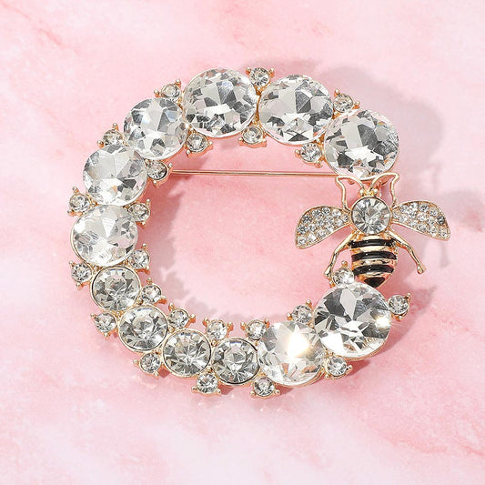Rhinestone Paved Honey Bee Accent Glass Stone Cluster Circle Pin Brooch