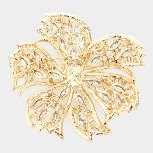Pearl Pointed Stone Embellished Oversized Flower Pin Brooch