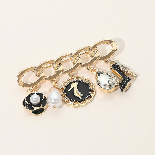 Pearl Flower High Heel Teardrop Cluster Charm Pin Brooch