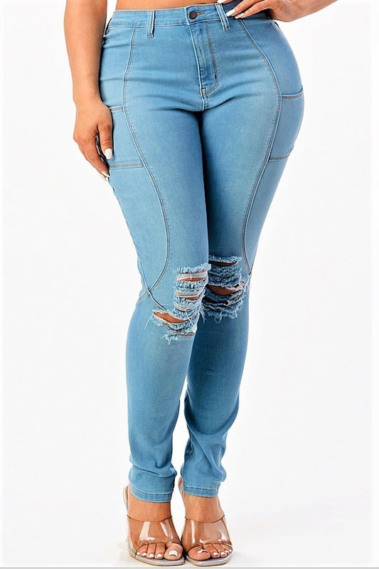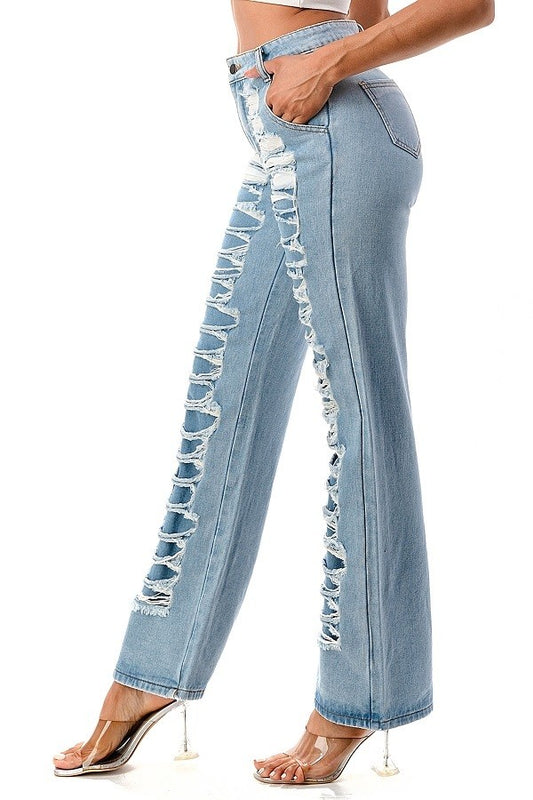 HIGH WAISTED WIDE LEGGED DISTRESSED