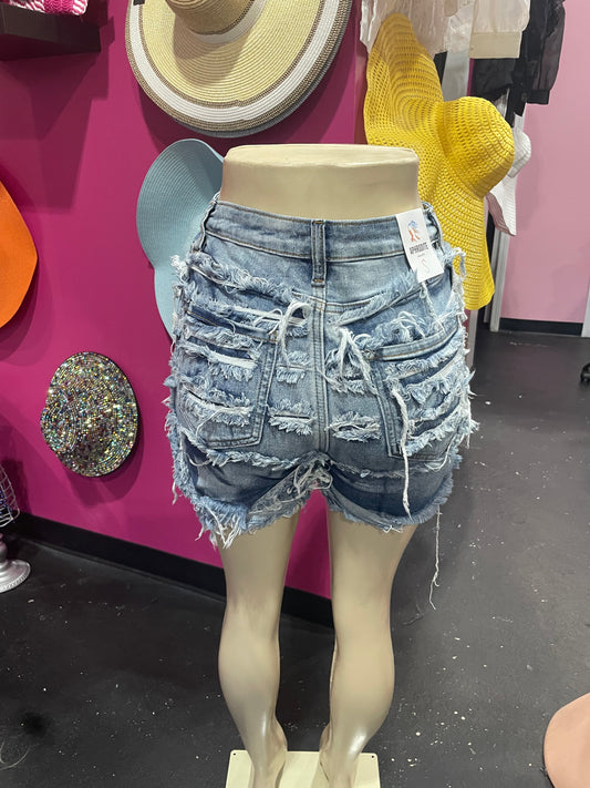 High Rise Super Frayed on Out seam Destroyed Denim Bermuda