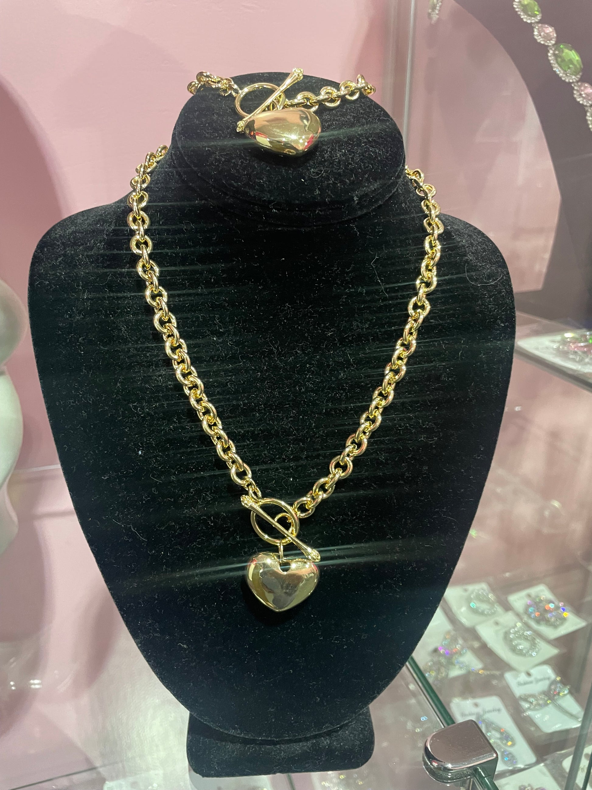 Gold Dipped Metal Heart Charm Toggle Bracelet & Necklace