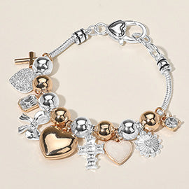 Heart Cross Bow Mixed Charm Beaded Bracelet