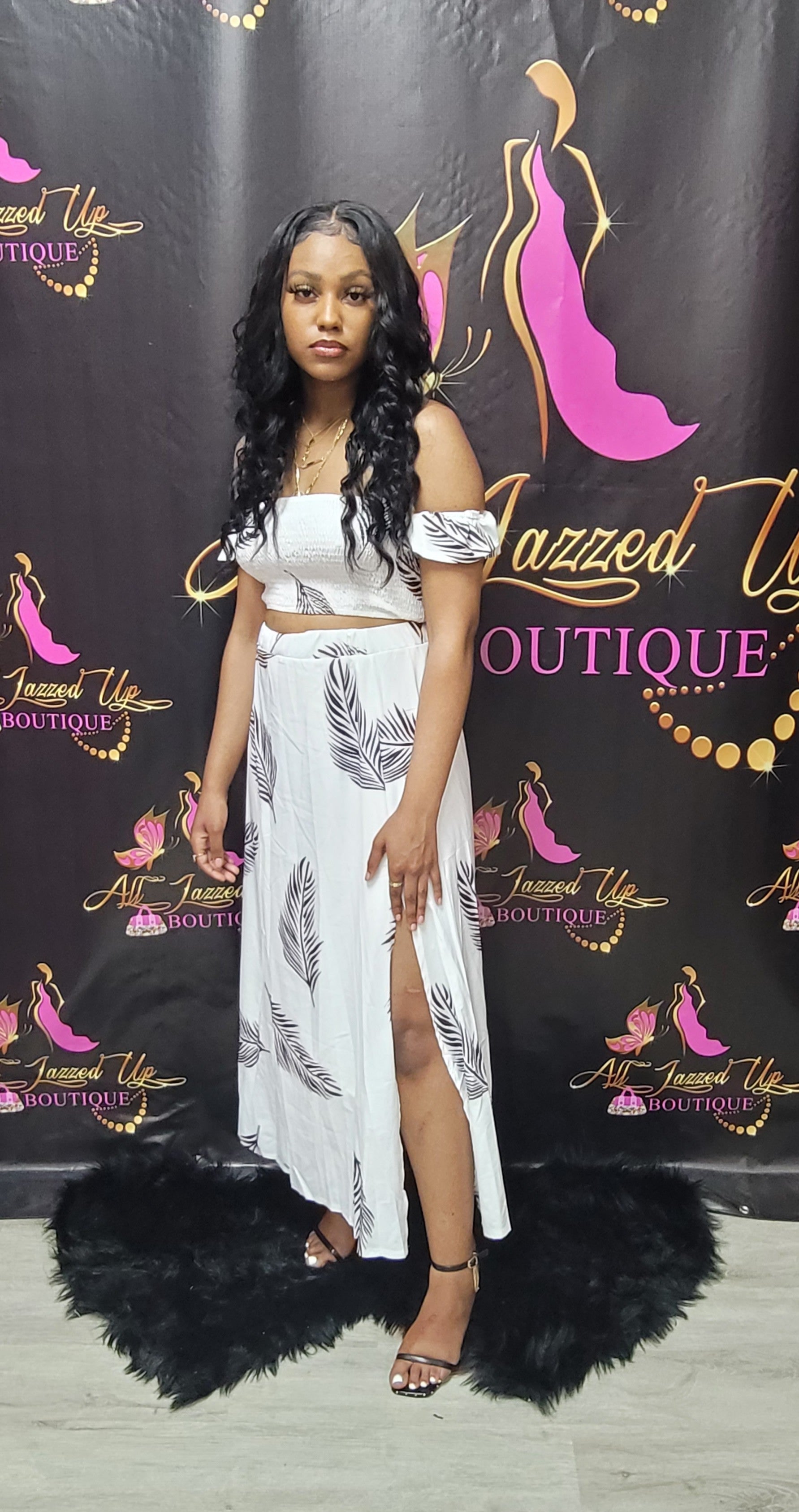 Sexy Flowy Crop Casual Split Floral Soild Ladies Trendy Cute Chiffon Comfy Off Shoulder Full High Split Patterned Two Piece Model is wearing a small and is 5'6