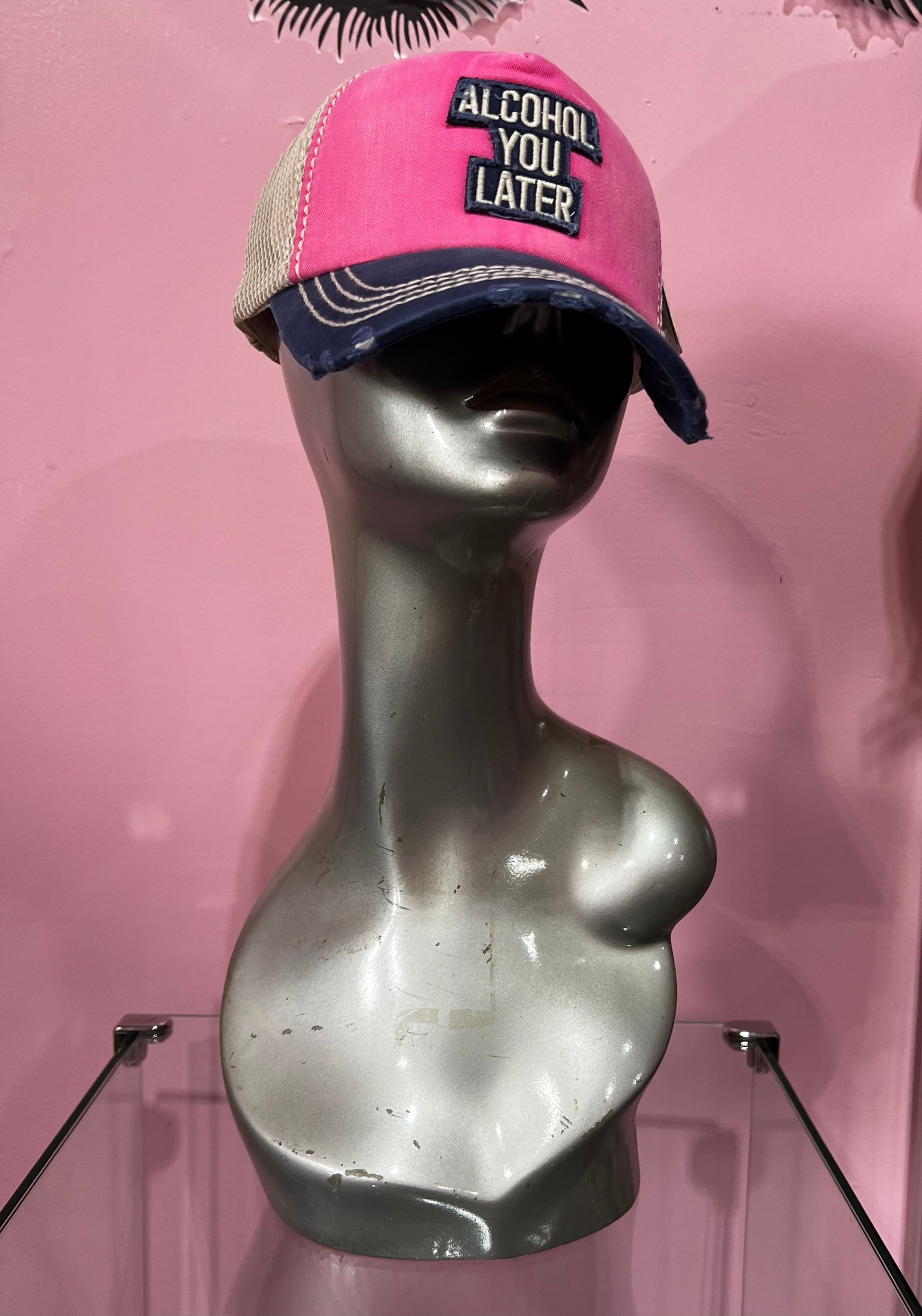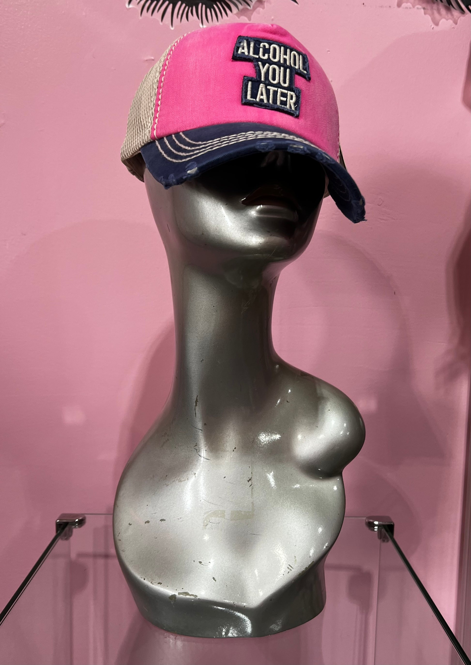 Mesh Back ALCOHOL YOU LATER Message Patch Vintage Baseball Cap